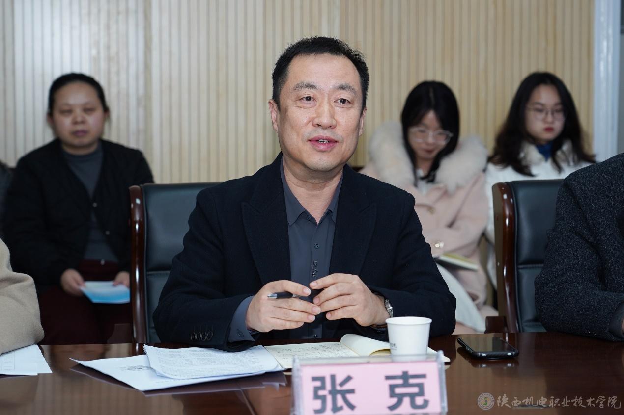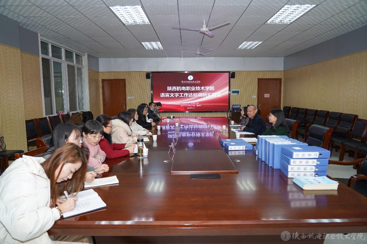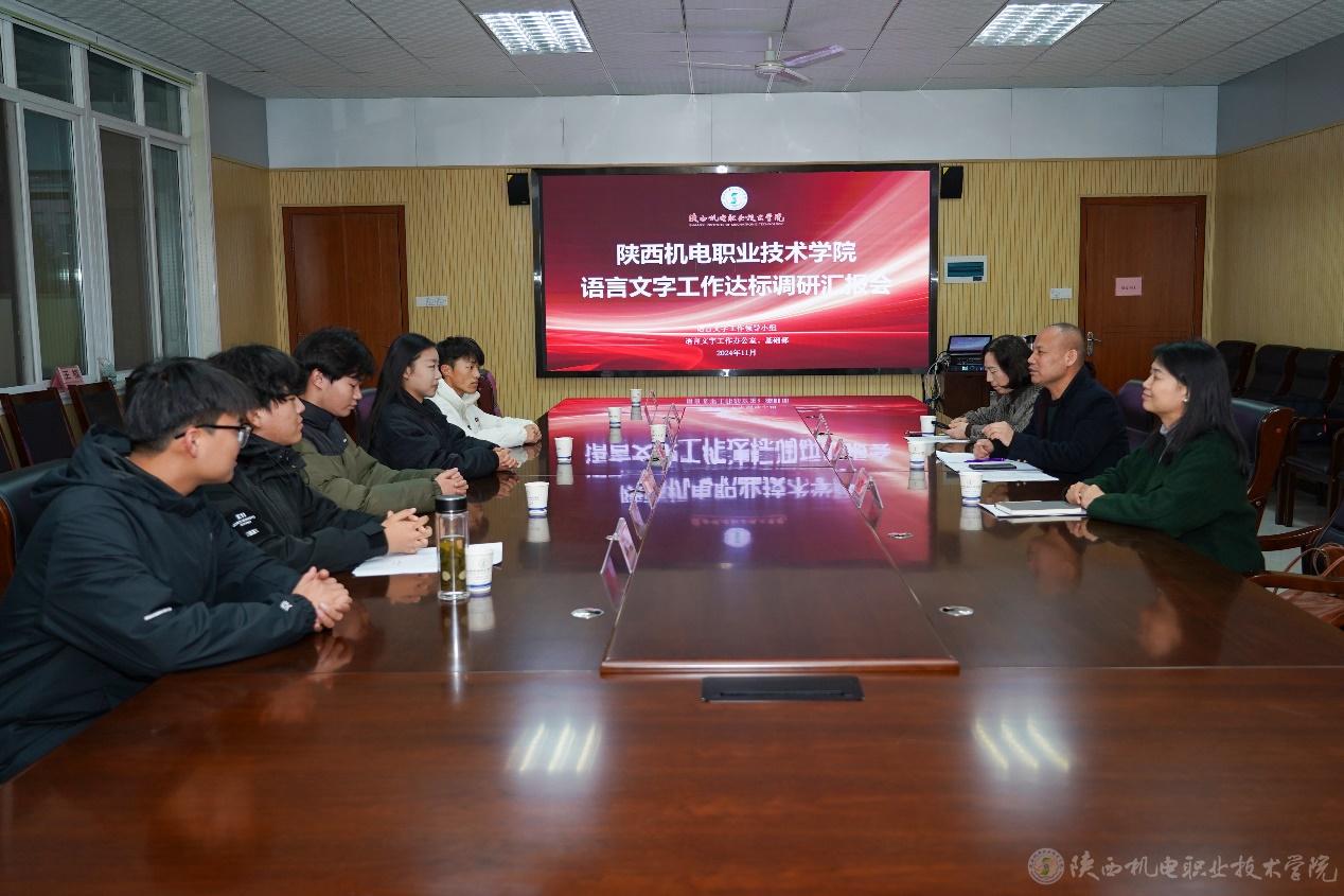 11月18日下午,陕西省高等院校语言文字达标工作调研会议在陕西机电职业技术学院蟠龙校区图书馆二楼会议室顺利召开。专家组由宝鸡文理学院国家语言文字推广基地执行主任王应龙教授,西北大学文学院教授冯鸽,渭南师范学院文学院教授、省级测试员孙萍萍组成。学校党委委员、副院长、语言文字工作领导小组副组长张克,以及党委宣传部、党委学工部(学生处)、校团委、教务处等相关部门负责人出席会议。会议由语言文字工作办公室主任、基础部副部长李明主持。