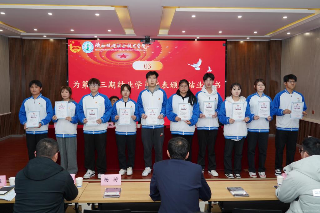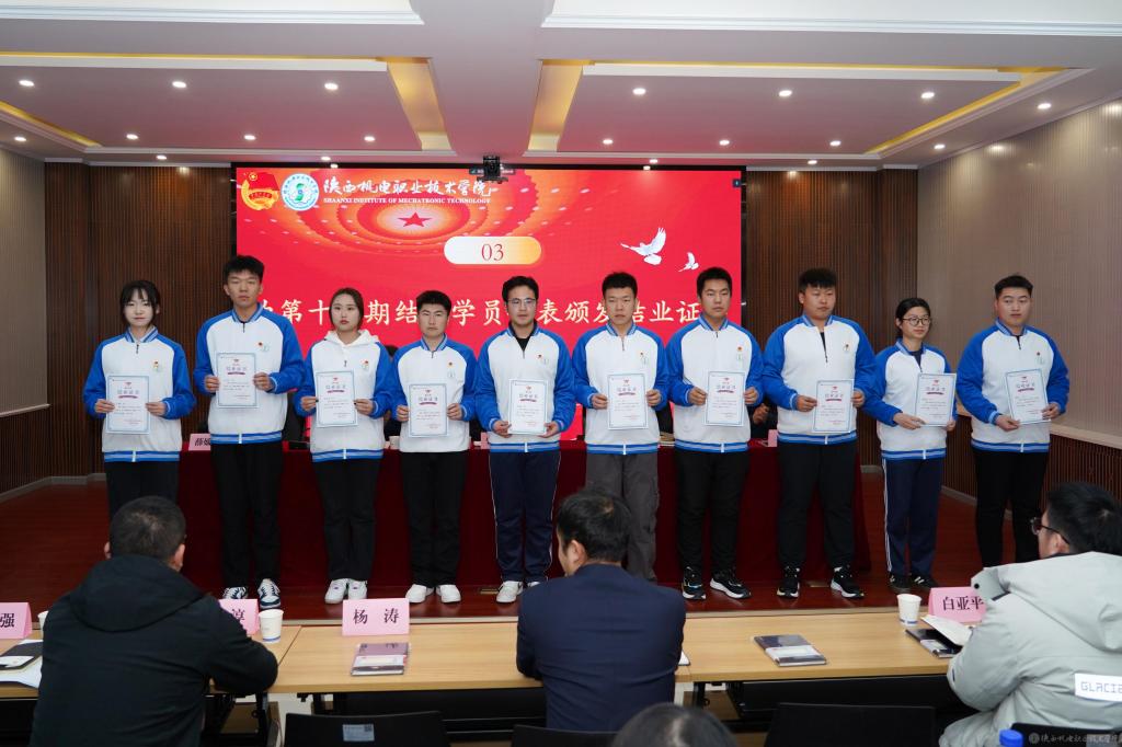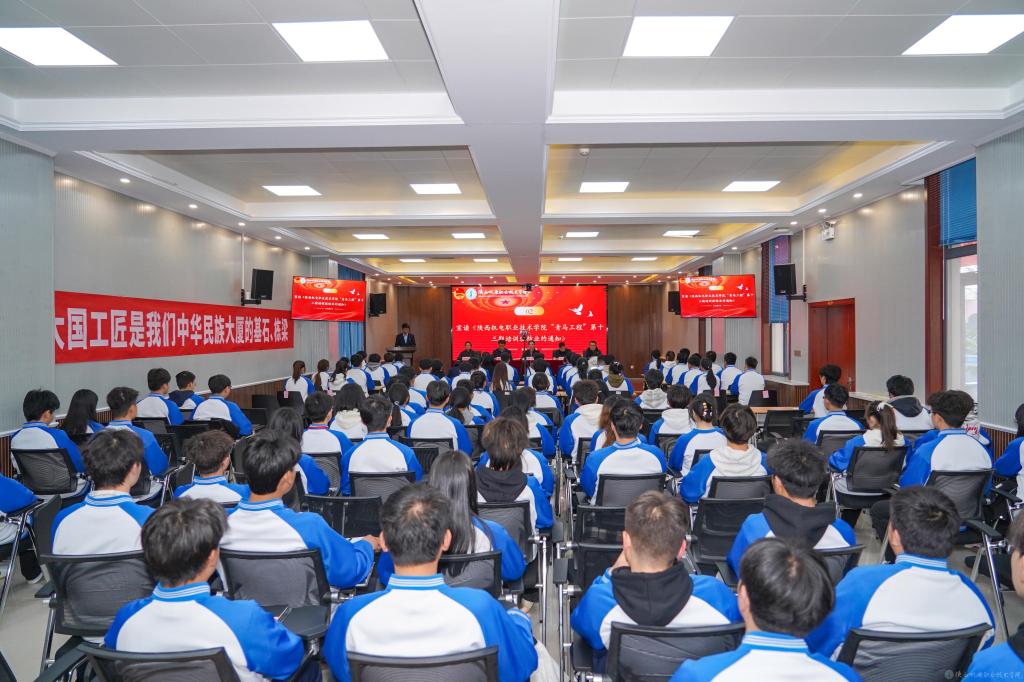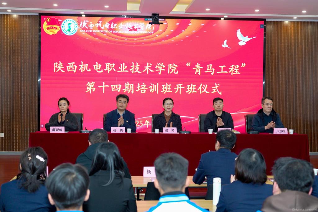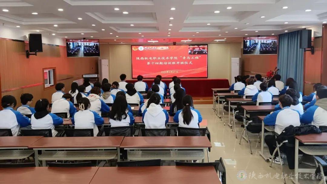 2月27日下午,陕西机电职业技术学院在蟠龙校区博学楼111会议室举行“青马工程”第十三期培训班结业暨第十四期培训班开班仪式,宝福路校区在汽车机电大楼四楼视频会议室同步进行。
