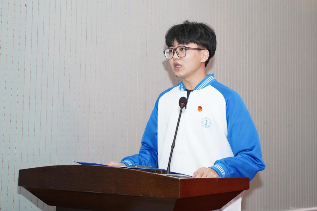 第十四期“青马工程”学员代表、智能制造学院张世哲同学表态发言,他表示全体学员将积极追求成长,不断扩展潜力,以饱满的热情、坚定的信念、务实的作风,投入到“青马工程”的学习和实践中,努力成为信仰坚定、能力突出、素质优良、作风过硬的青年政治骨干。