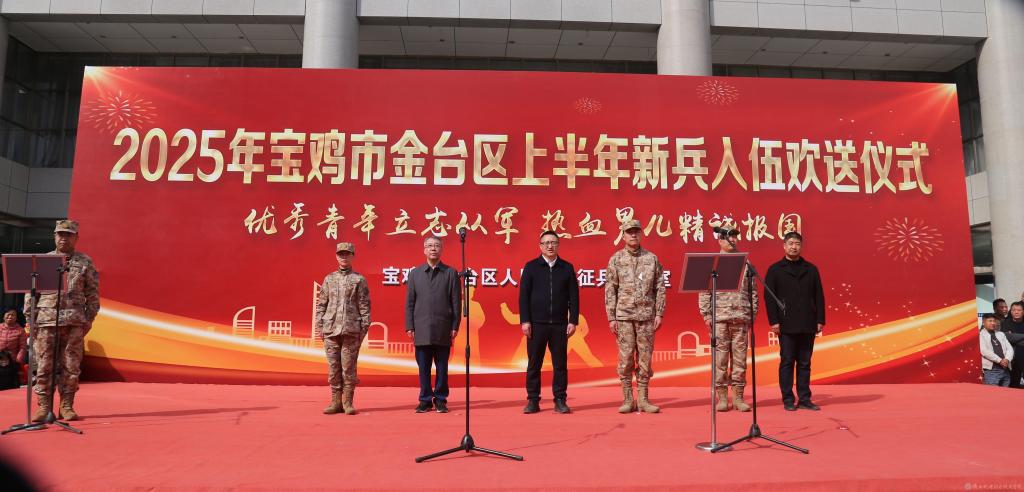 3月17日下午,2025年宝鸡市金台区春季新兵入伍欢送仪式在金台市民中心广场举行。陕西机电职业技术学院党委学工部部长、学生处处长、人武部部长王建斌代表学校参加欢送仪式。活动由金台区人武部政委宋景富主持。