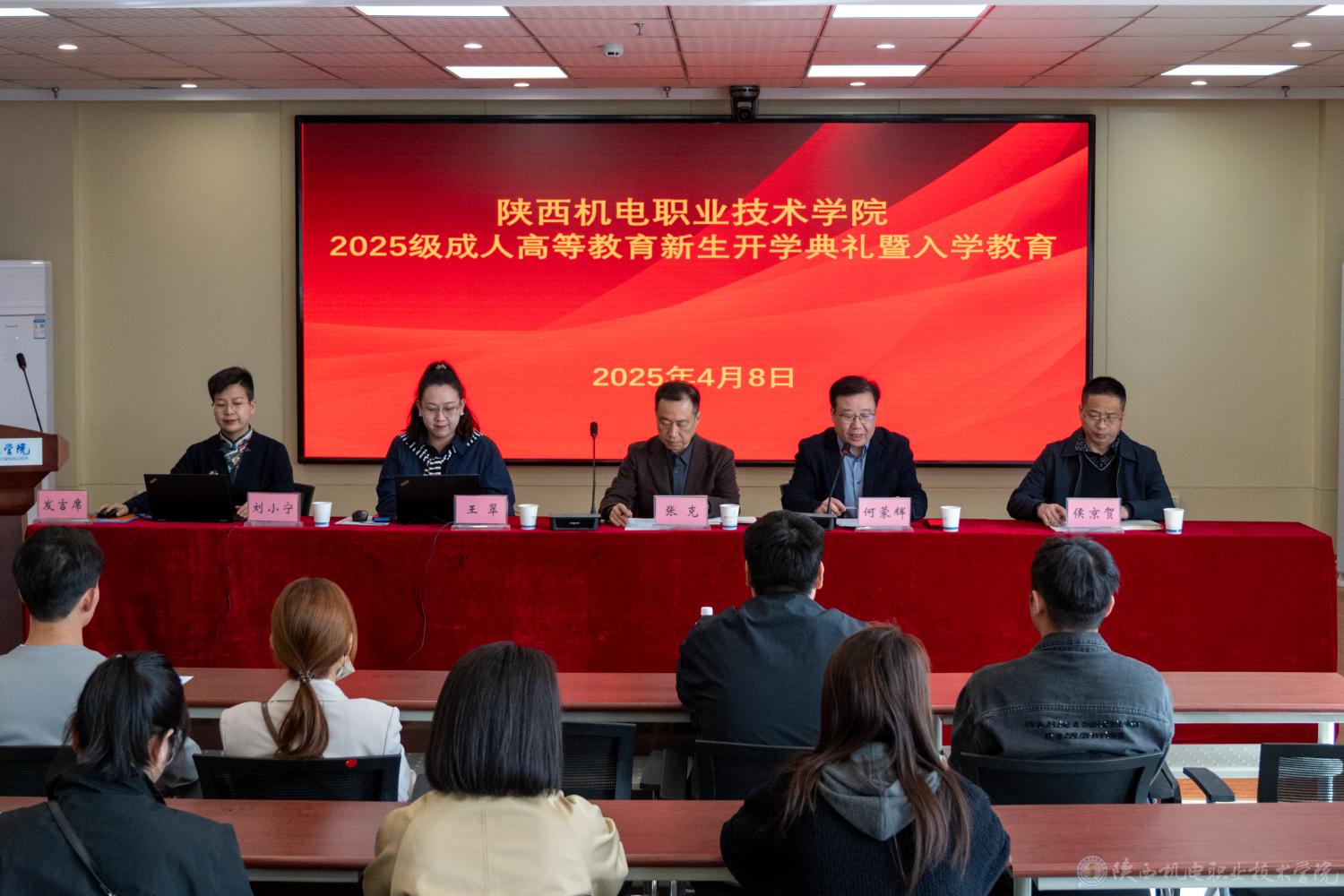 4月8日上午,陕西机电职业技术学院2025级成人高等教育开学典礼暨入学教育大会在宝福路校区汽车机电大楼四楼会议室举行。党委委员、副院长张克出席典礼并致辞,2025级1745名新生线上线下同步参与此次大会。继续教育与培训学院院长何蒙辉主持仪式。