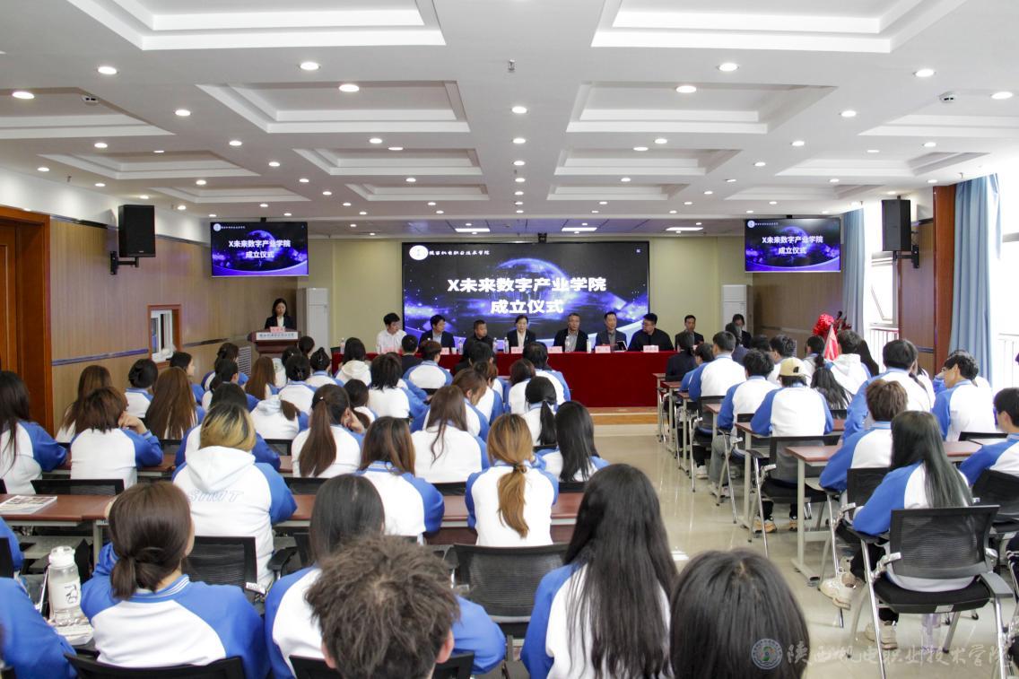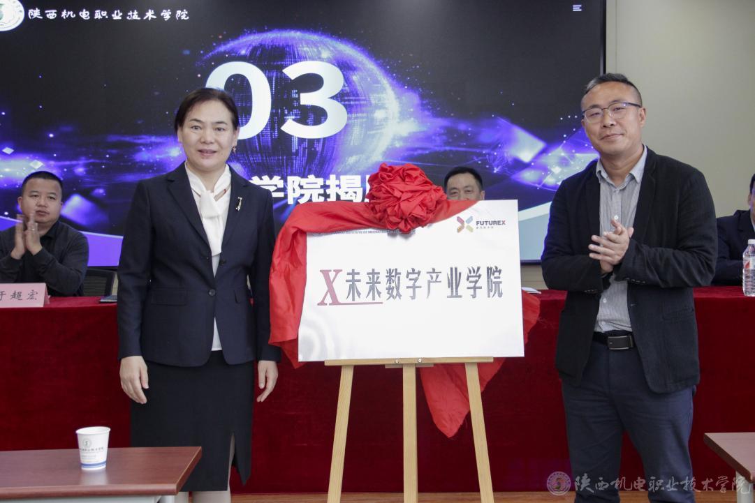 为进一步推动学校校企合作、产教融合向数字化领域进军,培养更多符合行业需求的数字服务型高技能专业人才,为当地产业进行数字化赋能和数字内容服务,4月11日,陕西机电职业技术学院在宝福路校区举行“X未来数字产业学院”揭牌成立仪式。学校党委副书记、纪委书记陈红梅,党委委员、副院长张克;西安爱克斯未来集团董事长谢飞,西安数字内容产业基地负责人于超宏等出席仪式。揭牌成立仪式由学校教务处、校企合作处处长白娟娟主持。