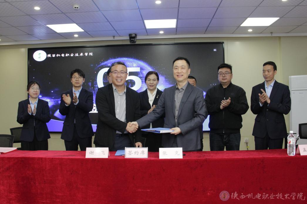 谢飞和张克代表校企双方签订合作协议