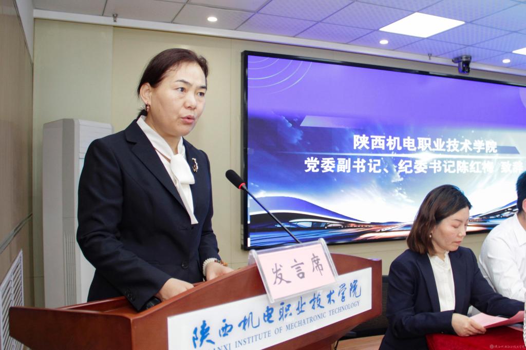 揭牌仪式上,陈红梅致辞。她指出,我校始终以服务国家战略和区域经济为导向,紧密对接“数字经济”发展需求,X未来数字产业学院的成立,是学校深化“教育链、人才链与产业链、创新链”有机衔接的重要举措,学校将携手西安爱克斯未来集团等头部企业,共同探索“产学研用”一体化新模式,构建多层次、立体化实践教学体系,为数字产业输送更多高素质技术技能人才。