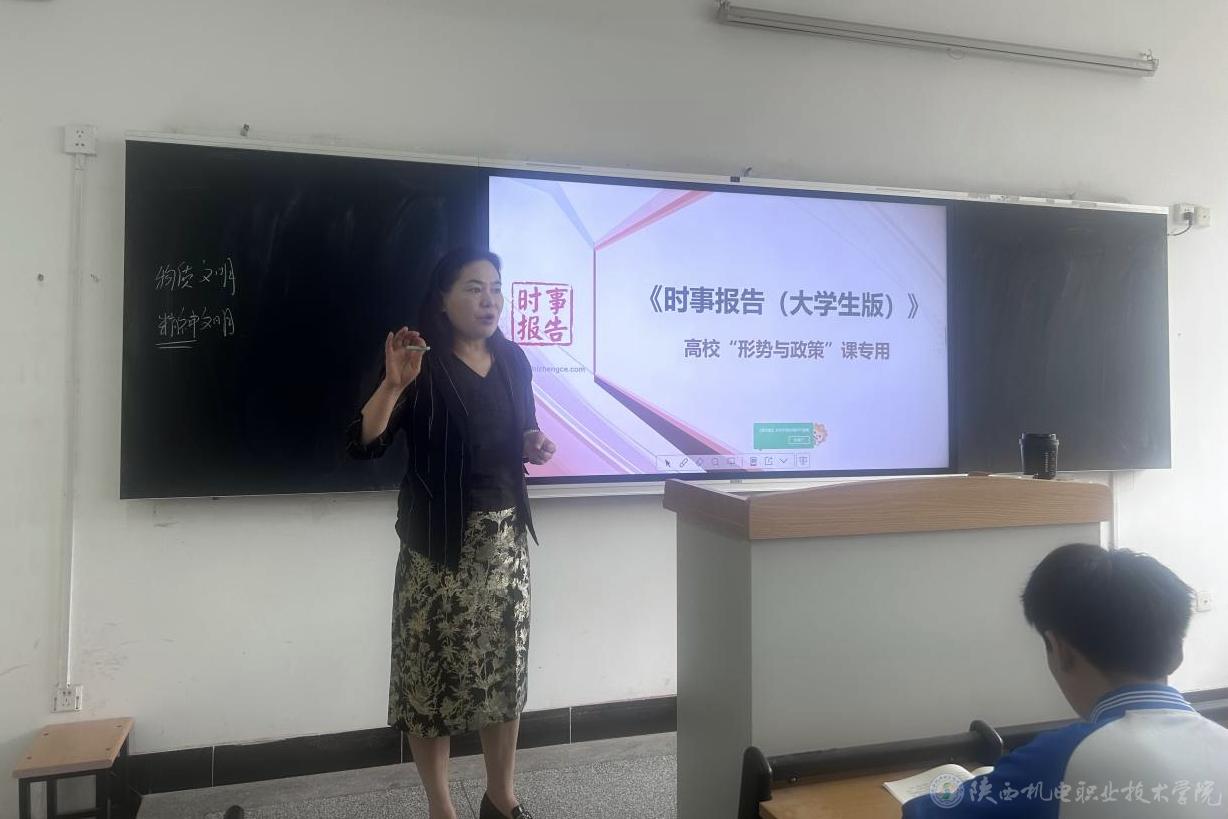 4月27日上午,陕西机电职业技术学院党委副书记、纪委书记陈红梅在宝福路校区第一教学楼302教室为23汽车营销、23汽车制造、23智联汽车、21汽制五年2合班30余名学生讲授形势与政策课《加快建设社会主义文化强国》专题内容。