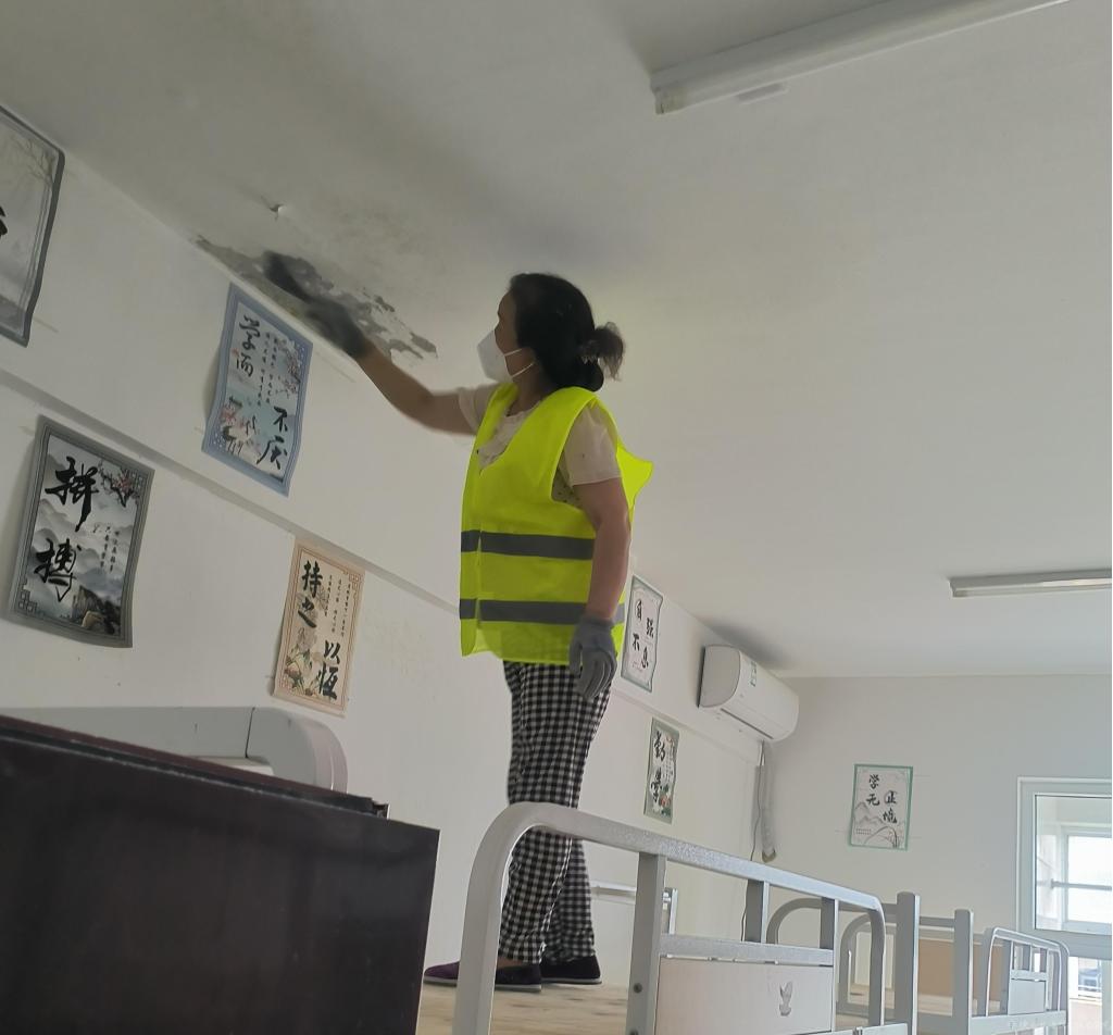 墙面焕新颜,对学生公寓所有宿舍及楼道墙面进行全面细致的修补,剔除破损、开裂部分,再统一粉刷环保涂料,原本斑驳的墙面变得洁白整洁,视觉舒适度大幅提升。