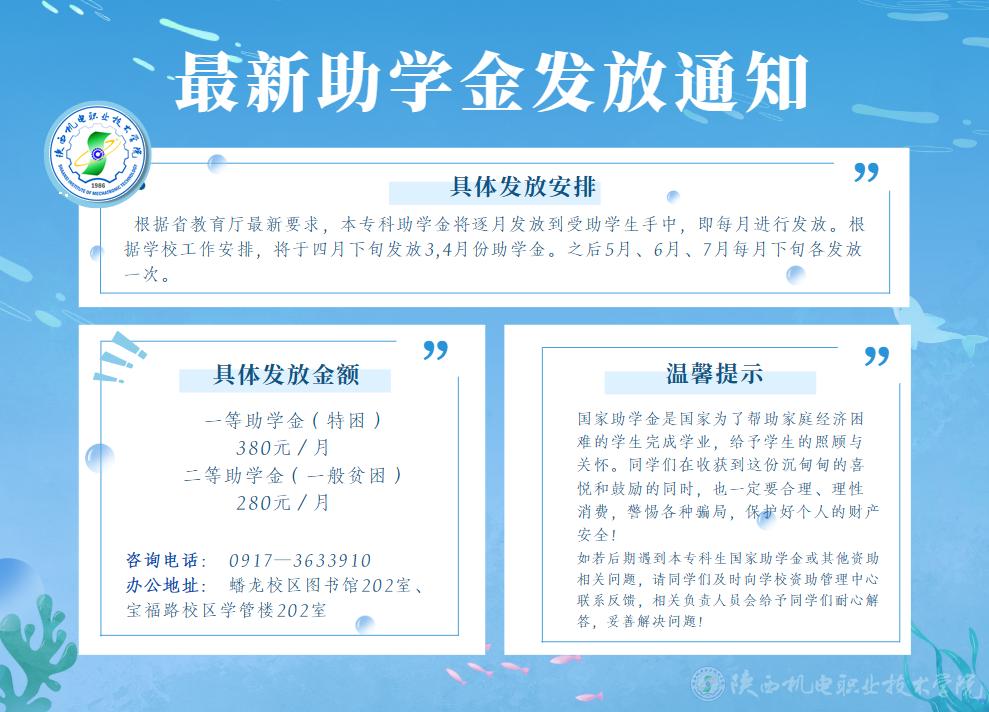 国家助学金是国家为了帮助家庭经济困难的学生完成学业,给予学生的照顾与关怀。同学们在收获到这份沉甸甸的喜悦和鼓励的同时,也一定要合理、理性消费,警惕各种骗局,保护好个人的财产安全!
