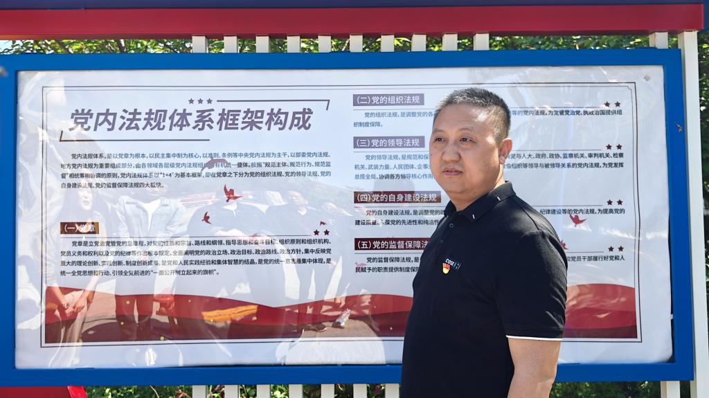 在金台法治文化园内,党员们首先参观了法治文化展览,深入了解了我国法治建设的历程和成果。随后,在园内主题展板前李靖为支部全体党员上了一堂生动的党课,以党内法规体系框架构成、违纪与纪律处分等内容为主线,详细讲解了《中国共产党纪律处分条例》的相关规定,强调了加强党纪学习教育的重要性和必要性。